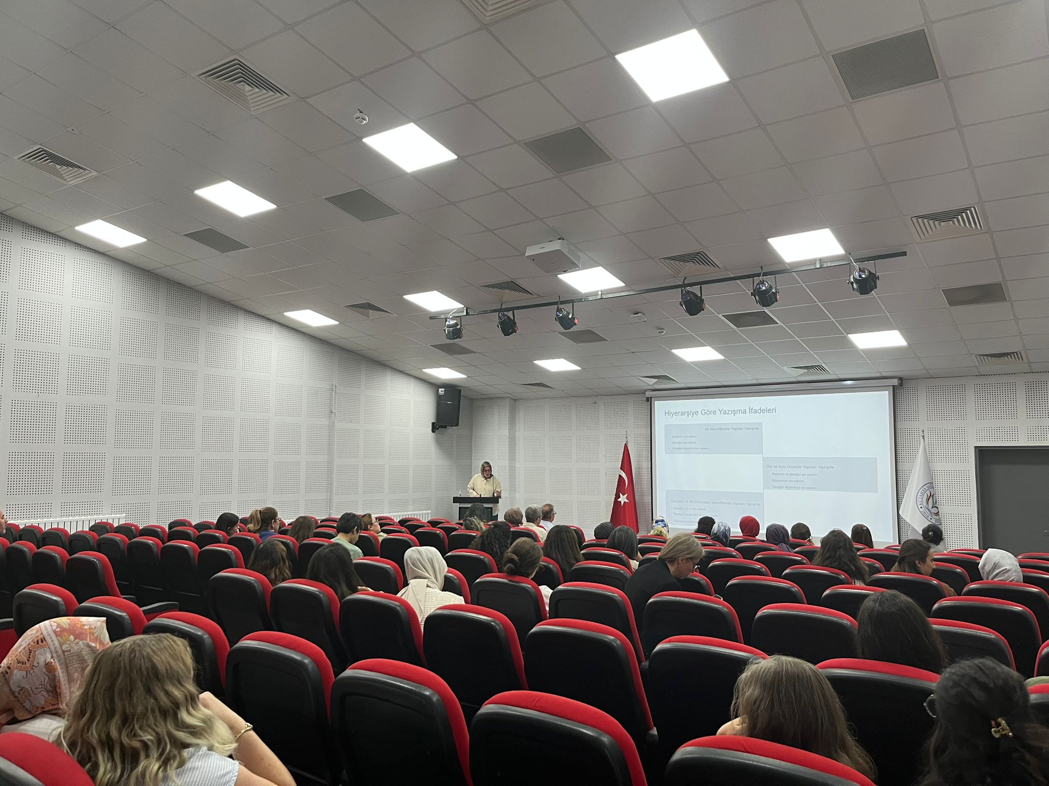 Eğitim programı, 24.09.2025 tarihinde Germiyan Konferans Salonu’nda yapıldı. Bilgi İşlem Daire Başkanlığı personeli Mühendis Fatma Zehra Acar tarafından verilen eğitime, Dekan Yardımcısı Dr. Öğr. Üyesi Sevil Çiçek Özdemir, Dekan Yardımcısı Dr. Öğr. Üyesi Havva Yeşildere Sağlam ve Fakülte Sekreterimiz Hakkı Aktürk ve fakültemiz akademik ve idari personeli katılım sağladı.